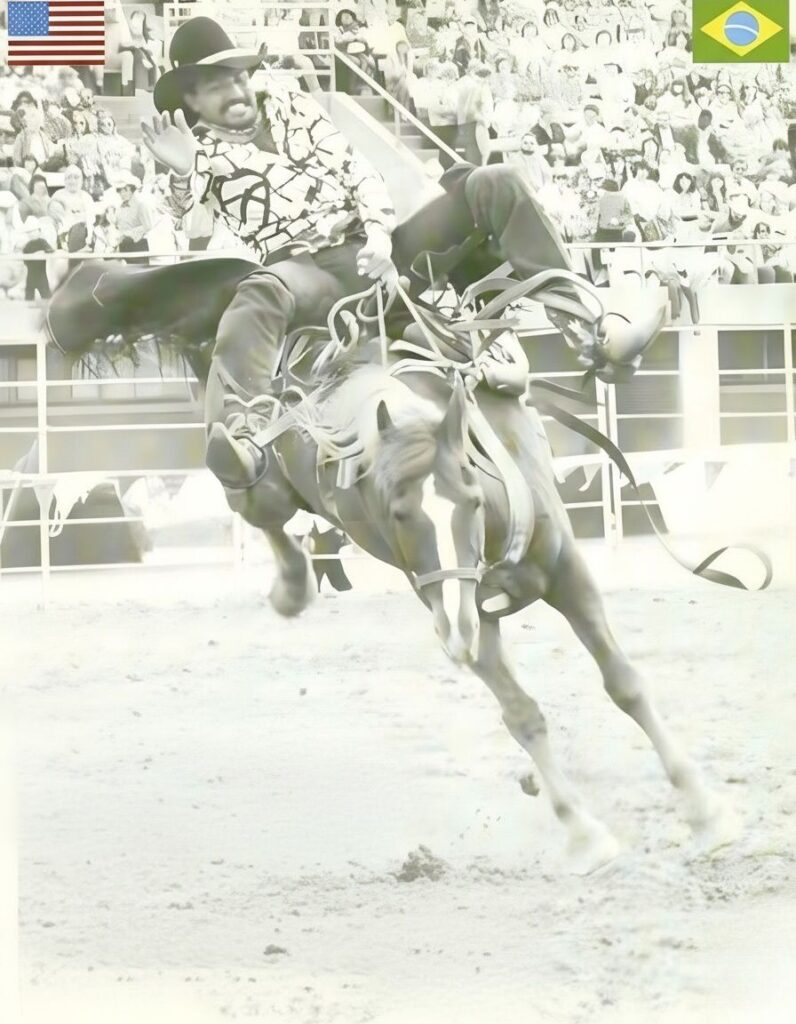 No começo dos anos 1980, tive o privilégio de conviver e montar ao lado de um verdadeiro pioneiro do rodeio brasileiro: Milton Barbosa Santiago, o Djangão. Durante nossa temporada nos Estados Unidos, vivemos momentos intensos e marcantes. Eu, me dediquei ao máximo para aprimorar as técnicas no rodeio em touros (na prática), enquanto o Djangão se destacava no cavalo. Naquela época fazíamos as montarias na modalidade cutiano por meio de apresentações especiais mostrando como era a montaria. Também realizávamos demonstrações montando na crina do cavalo (modalidade no sul do Brasil), algo completamente fora dos padrões americanos. Os cowboys dos Estados Unidos ficavam impressionados, muitos nos chamavam de “loucos” por fazermos algo tão diferente, sem equipamentos, apenas na raça e na coragem. Mas foi justamente isso que chamou atenção: nossa autenticidade, ousadia e paixão pelo que fazíamos. O Djangão foi o primeiro brasileiro a montar cutiano nos Estados Unidos, abrindo as porteiras do rodeio nacional para o mundo. Além disso, foi ele quem trouxe para o Brasil a sela americana, transformando para sempre o estilo e a técnica da montaria em cutiano. Guardo com orgulho as lembranças daquela época. O Djangão não representava apenas o Brasil, ele levava o nosso país no coração, no estilo e na montaria.